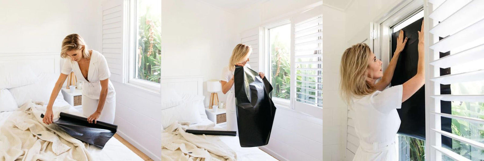Sleepy Sundays Instant Blackout Blinds are super easy to install and create a complete blackout.