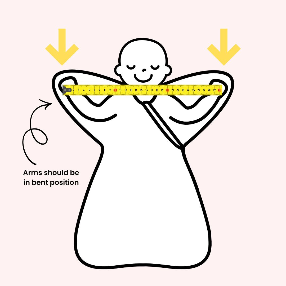 The correct way to measure your baby's arm span is to measure with your baby’s arms slightly bent - this is how your baby sleeps naturally, then measure the tops of their hands from one side to the other (left to right or right to left).
